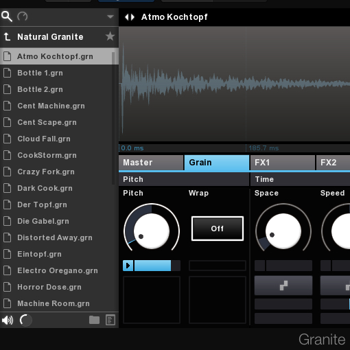 Granite is a awesome small Granular Synthesis Plugin. He is the only one to make Granular simple and easy. With Granite you create awesome textures and very specially effects.