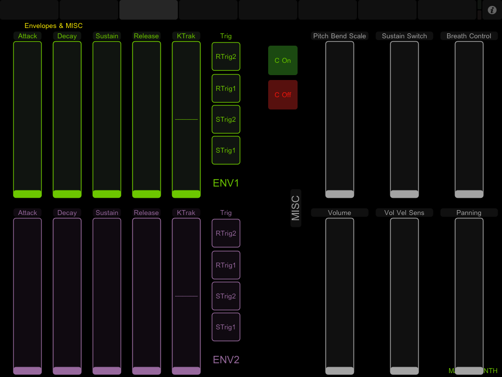 The editor is mapped for The Missing Link (wifimidi.com) wireless TouchOSC to MIDI device.