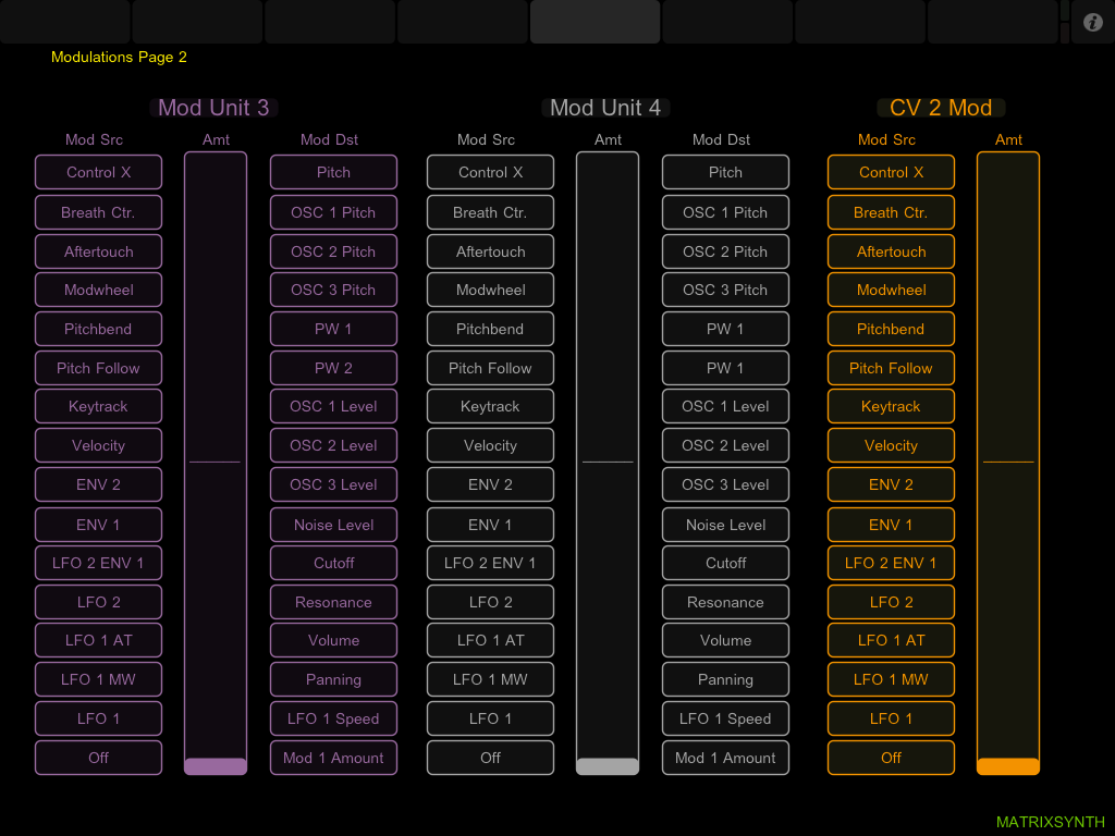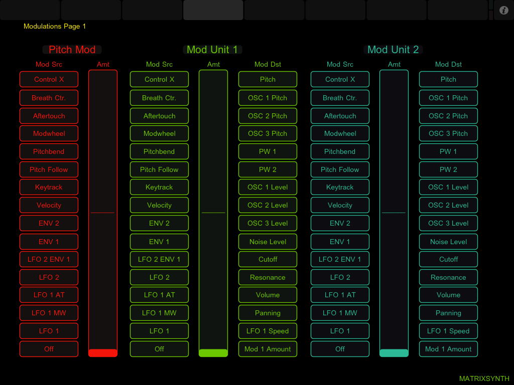 Below are screens for each page of the template in order. You can also find the template and on wifimidi.com. You can find more info on The Missing Link wireless TouchOSC to MIDI box here. Click the screens below for the full size shots. Also see my Rhodes Chroma editor.
