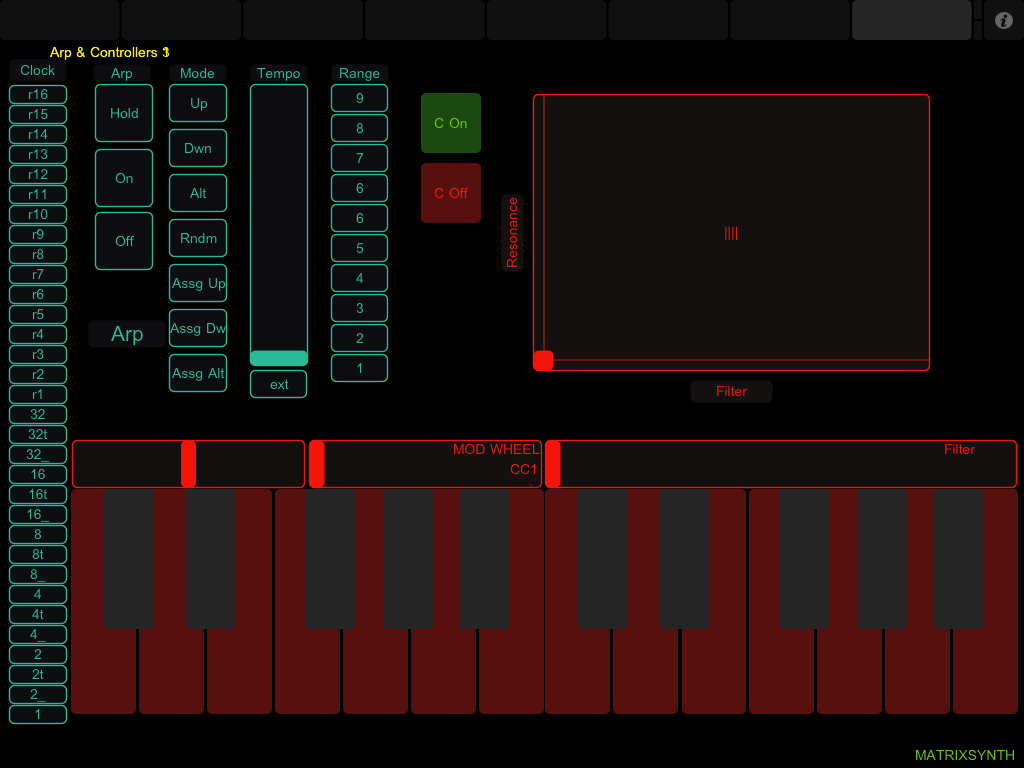 Note there is no PC in between. The Missing Link handles all communication between the iPad and the Pulse+, and communication between the iPad and The Missing Link is completely over wifi - no cables. You are free to roam with the iPad. The video above shows some basic editing of parameters to show how it works. Every editable parameter of the Pulse+ is featured along with some custom controls including touch pads, keys and more. Not in the demo, but on each screen you can see a red and green square. These are middle C note on and note off buttons for drones and experimentation with the controls when you do not want to use an arpeggiator. I actually have The Missing Link going into a MIDI Merge so I can use an external keyboard as well. The Missing Link is a class compliant MIDI USB device and can be used with the iPad camera connection kit as a CoreMIDI device or with your PC/Mac. Note in the beginning of the video the Pulse is sitting in a rack. The iPad with The Missing Link frees you of the rack and enhances the editing interface of the Pulse, making it much more usable in the studio or live setting.