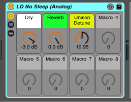 You can use the Macro Controls to balance the dry and wet (reverb) levels and the amount of unison detune. Enjoy!