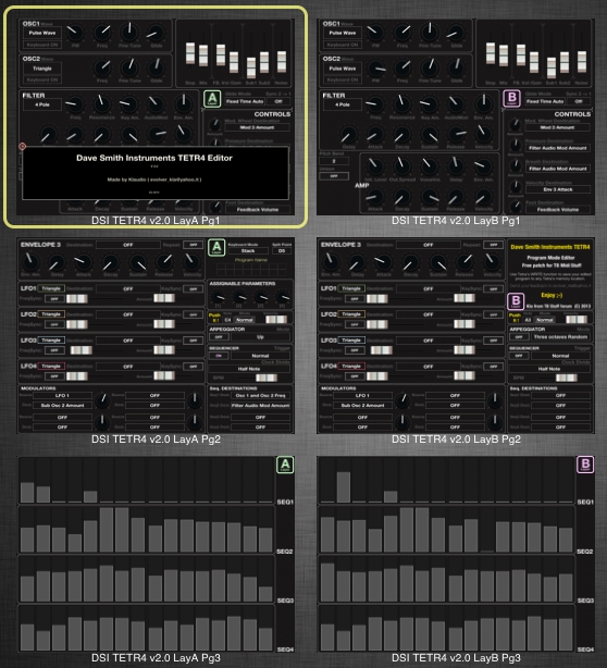 "Kla" Program Mode Editor for Tetra works over 6 pages: - two layer A pages; - two layer B pages; - sequencer page for A and B (two pages).
