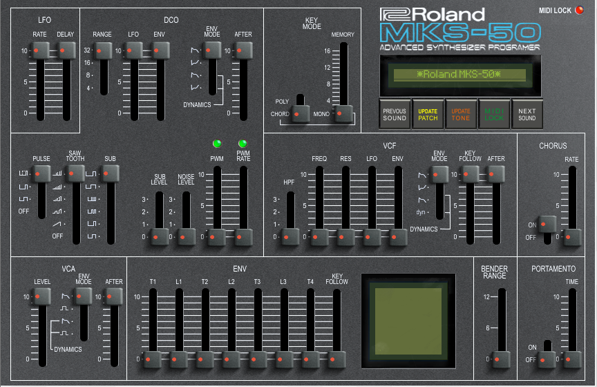 So here is my MKS-50 Advanced Synthesizer Programmer. Basically and upgrade of the Layzer’s very well done pg-300. Originally I was just going to add the ability to receive the current patch settings. However I ended up basically recreating the whole thing and adding a lot of other features.