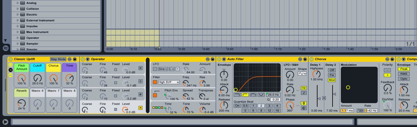 Devices: Auto Filter Chorus Operator Phaser Ping Pong Delay Reverb