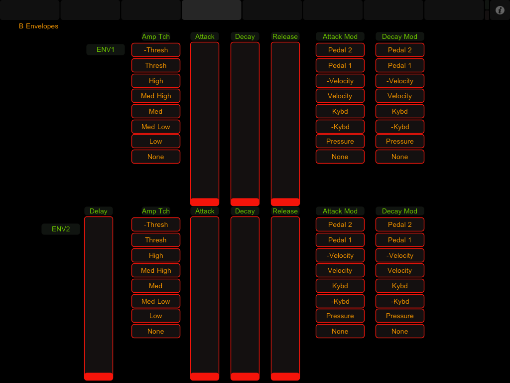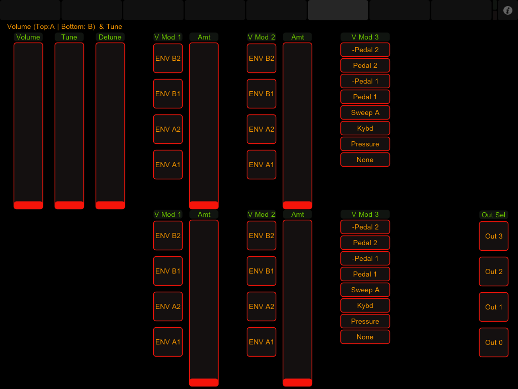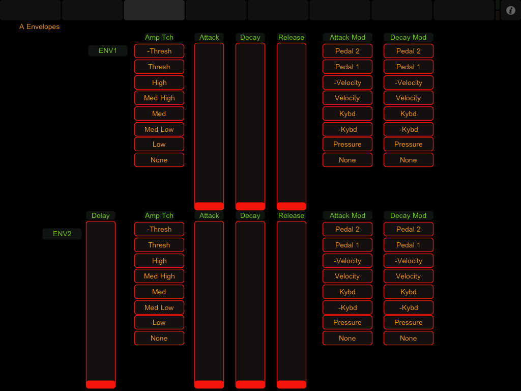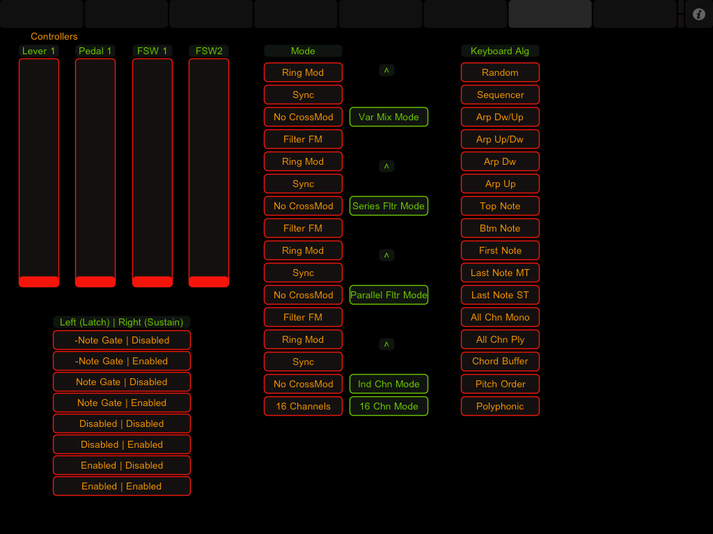 One for The Missing Link and two for OSCulator. Click the images for the full size screens. They will show you every editable parameter on the Chroma. The template interfaces for The Missing Link and OSCulator are exactly the same. The only difference is in the message format each sends. You can find a video of the previous template in this post. It's roughly the same but I switched out sliders for toggles where appropriate for finer control over the parameters.