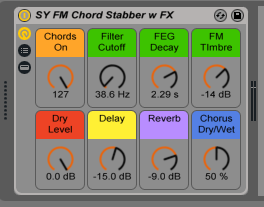 Most of those sounds were made by sampling chords from other records, then transposing. I've decided to synthesize the sound using Ableton's Operator, the Chord MIDI Effect, and a few extra Audio Effects (to give it some space). I'm having a blast playing this back on my Push. I can't wait to use it on my next track!
